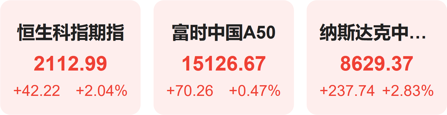 9月24日,隔夜恒生科技指数期货上涨2.04%,纳斯达克中国金龙指数上涨2.83%,富时中国A50指数上涨0.47%。