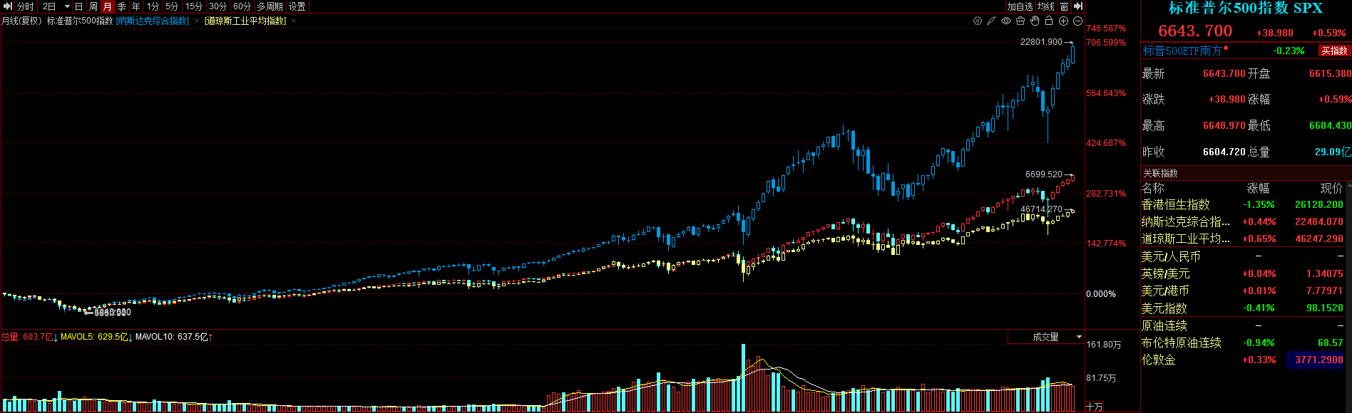 截至上周五收盘,道琼斯指数涨0.65%,报46,247.29点;标普500指数涨0.59%,报6,643.70点;纳斯达克指数涨0.44%,报22,484.07点。