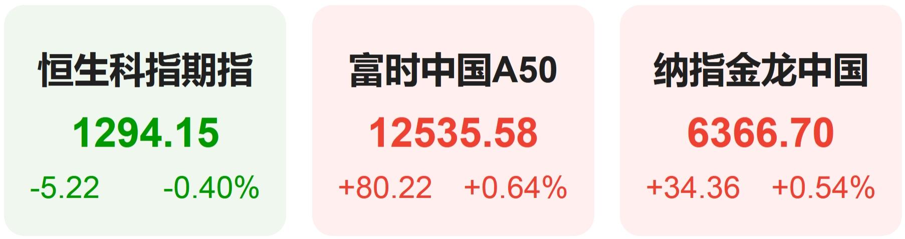 隔夜恒生科技指数期货下跌0.40%,纳斯达克中国金龙指数上涨0.54%,富时中国A50指数上涨0.64%。