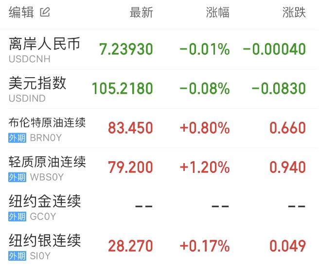 美国一年期通胀预期超乎预期,美元指数先跌后涨,盘中险守105大关,最终收跌0.08%,报105.22。