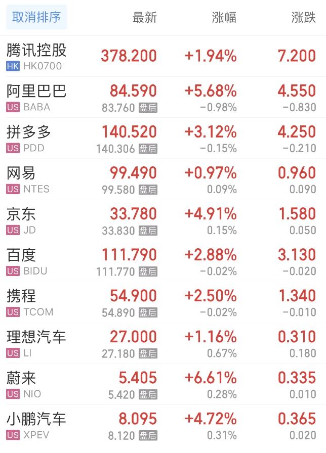 中国资产周一大涨,热门中概股多数上涨,腾讯控股(港股)涨1.94%,阿里巴巴涨5.69%,拼多多涨3.12%,网易涨0.97%,百度涨2.88%,携程涨2.50%,理想汽车涨1.16%,蔚来涨6.61%,小鹏汽车涨4.72%。