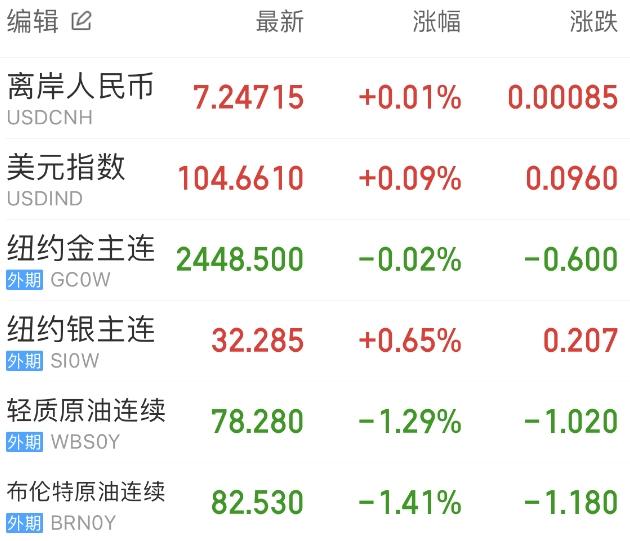 美元指数维持横盘震荡,最终收涨0.09%,报104.66。