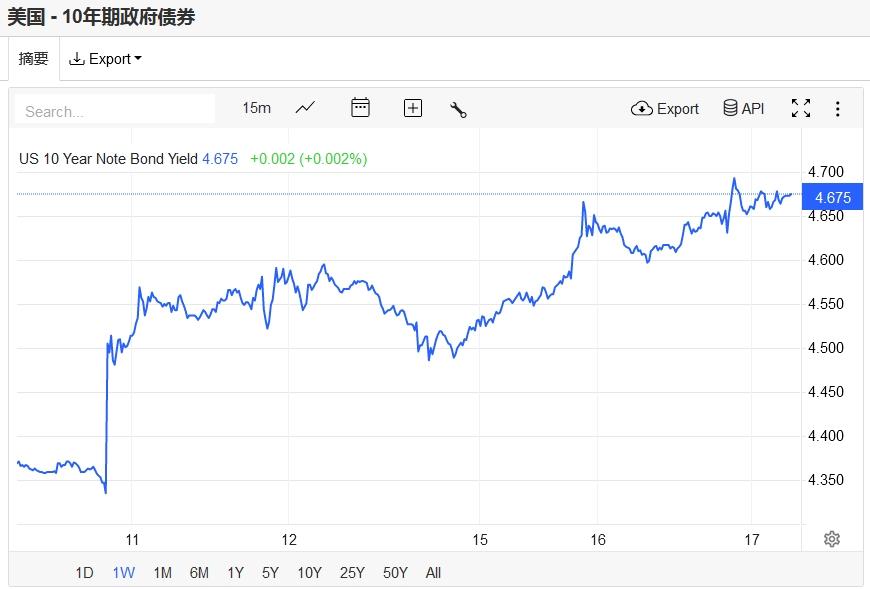 10年期美债收益率一度逼近4.7%关口,再创五个月新高,最终收报4.661%。对美联储政策利率最敏感的2年期美债收益率盘中再度触及5%大关,最终收报4.972%。