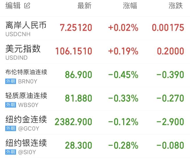 美联储官员继续打压市场的降息预期,美元指数盘中转涨,收复106关口,最终收涨0.19%,报106.15。