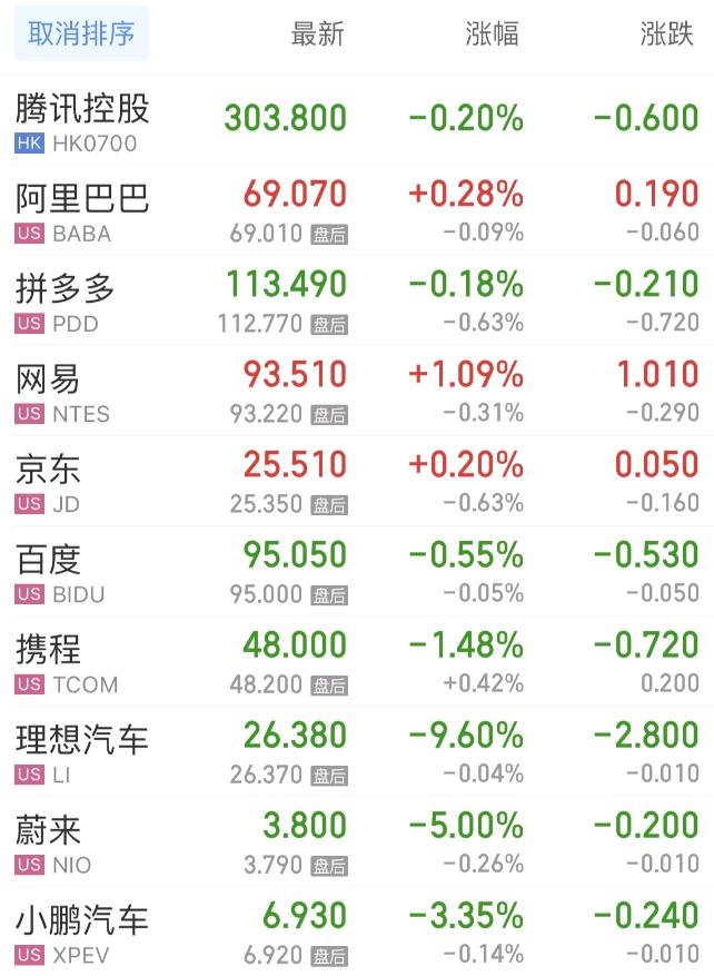 热门中概股方面,上周五腾讯控股(港股)跌0.20%,阿里巴巴涨0.28%,拼多多跌0.18%,网易涨1.09%,百度跌0.55%,携程跌1.48%,理想汽车跌9.60%,蔚来跌5.00%,小鹏汽车跌3.35%。