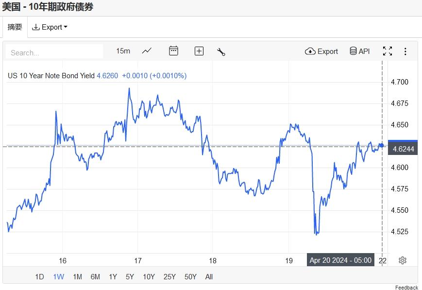 上周五基准10年期美债收益率收报4.62%,对美联储政策利率最敏感的2年期美债收益率收报4.97%。