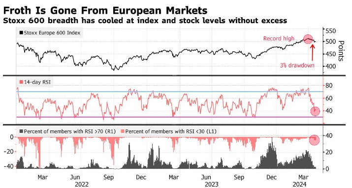 与此同时,投资者正准备迎接财报季的高峰,同时密切关注各大央行的言论,以判断利率前景。欧洲央行管委Francois Villeroy de Galhau表示,石油市场的不确定性不会阻止6月份的首次降息。