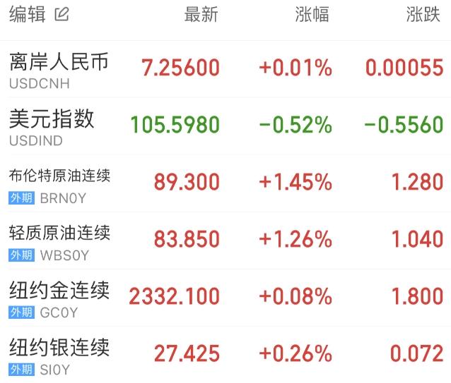 热门中概股方面,腾讯控股(港股)跌1.39%,阿里巴巴涨0.66%,拼多多跌1.38%,网易涨0.11%,百度涨0.72%,携程跌0.36%,理想汽车跌1.68%,蔚来跌0.60%,小鹏汽车涨0.07%。
