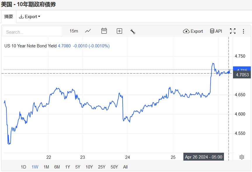 GDP报告中顽固的通胀迹象令交易员进一步下调对美联储的降息预期,美国国债收益率创下年内新高,10年期美债收益率最终收报4.70%。对美联储政策利率最敏感的2年期美债收益率最终收报4.96%。