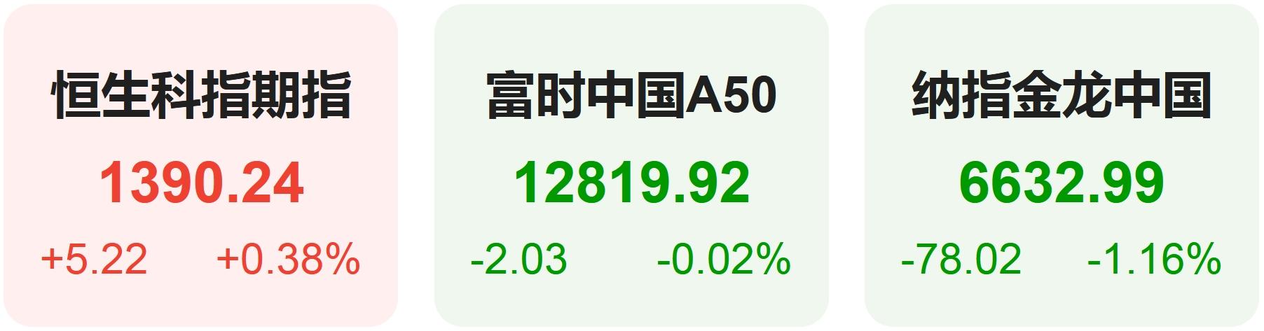 隔夜恒生科技指数期货上涨0.38%,纳斯达克中国金龙指数下跌1.16%,富时中国A50指数下跌0.02%。