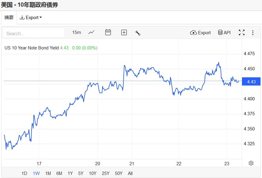 美债收益率集体反弹,10年期美债收益率冲高回落,但日内仍维持涨势,收报4.43%。对美联储政策利率最敏感的2年期美债收益率涨幅更加明显,收报4.88%。