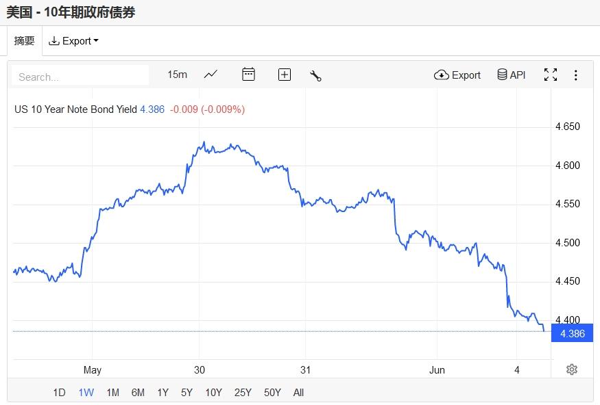 10年期美债收益率延续跌势,最终收报4.41%。对美联储政策利率最敏感的2年期美债收益率最终收报4.82%。