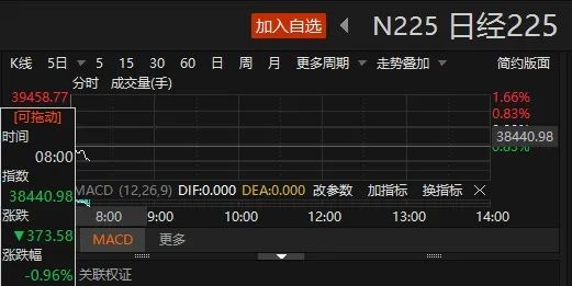 6月17日,日经225指数开盘跌0.96%,报38440.98点。截至发稿,日经225指数跌幅扩大至2.18%,报37968.52点。