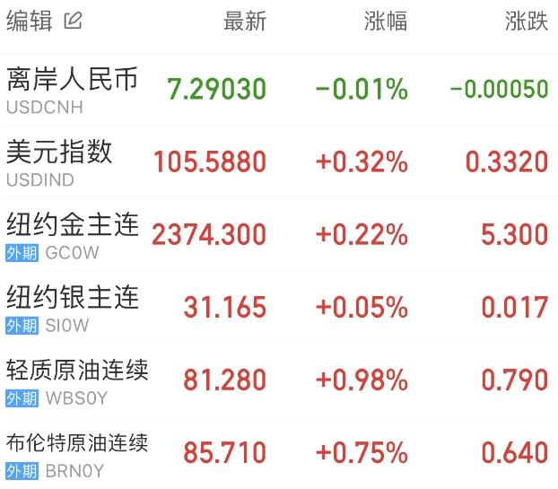 美元指数收涨0.32%,报105.59。