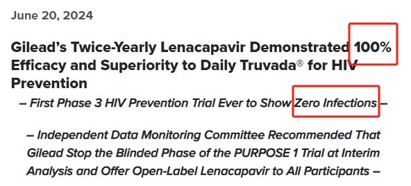 当地时间周四(6月20日),美国生物制药公司吉利德科学在官网宣布,其研发的“Lenacapavir”(来那卡帕韦)在预防艾滋病毒方面显示出了100%的有效性。