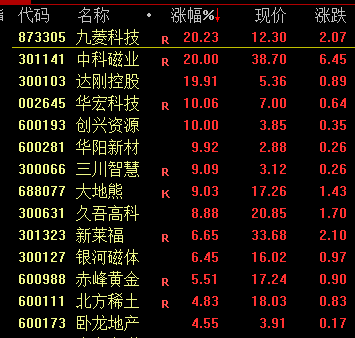 稀土永磁板块开盘大涨,中科磁业(301141)、华宏科技(002645)、创兴资源(600193)涨停。