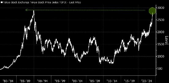 日本东证指数突破泡沫时期峰值触及纪录高位,买盘势头从少数一些股票溢出,凸显出此轮涨势的基础稳固。