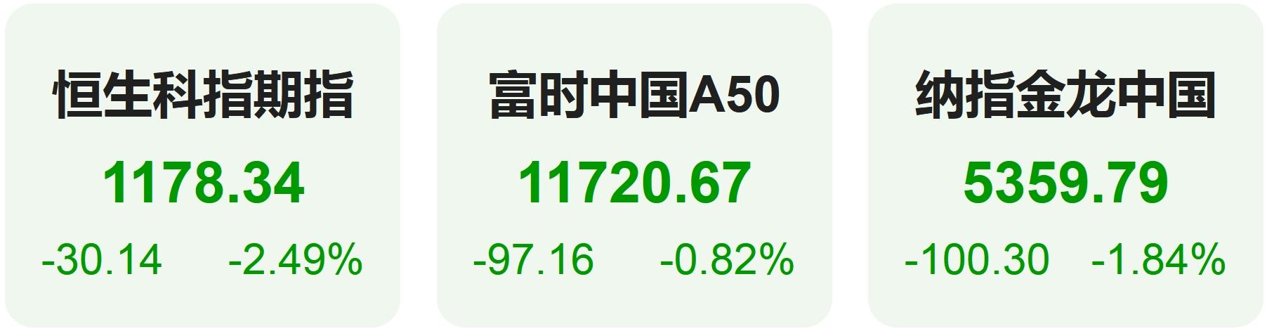 上周五恒生科技指数期货下跌2.49%,纳斯达克中国金龙指数下跌1.84%,富时中国A50指数下跌0.82%。