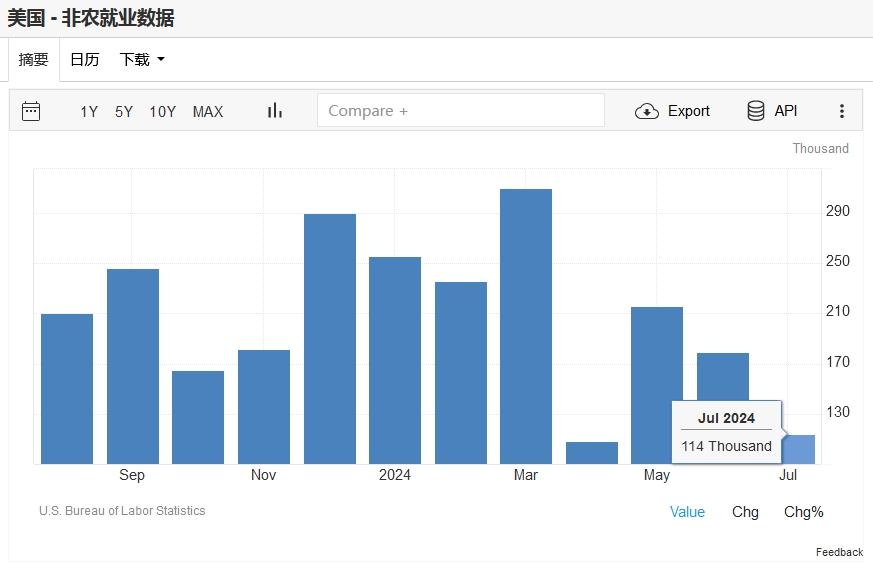 上周五美国劳工统计局周五公布的数据显示,美国7月非农就业人数增长放缓幅度超过预期,仅仅增加11.4万人,失业率升至4.3%。这些数据可能加剧人们对就业市场恶化的担忧,并预示着美国经济可能陷入衰退。而随着对美国经济健康状况和科技公司前景的担忧加深,股票抛售周五加剧,使得黄金、政府债券和被视为避险资产的货币走高。