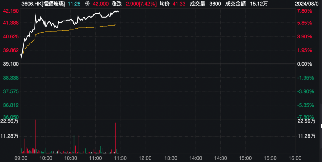 昨天福耀玻璃(600660)披露的半年报显示,公司2024年上半年实现营业收入183.4亿元,同比增加22.01%,归属于上市公司股东的净利润34.99亿元,同比增加23.35%。福耀玻璃今天上午股价大幅上涨,其A股盘中涨幅超过4%,福耀玻璃港股盘中涨幅超过7%。