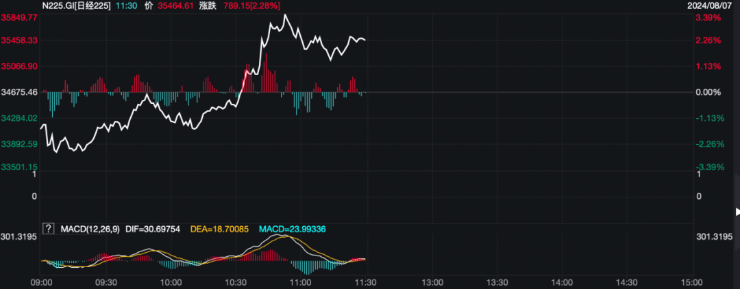 日经225指数盘中也一度涨超3%,截至发稿,涨幅超过2%。