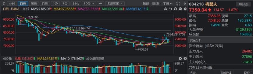 机器人板块最近经历了一波放量大涨后,已经缩量回调了几天。