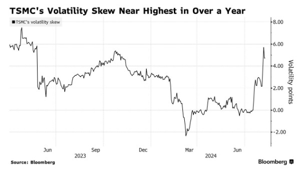 但在保持乐观情绪的同时,投资者也在对冲他们的押注。本周,针对台积电和三星股价进一步下跌的避险需求大幅上升,而台积电和三星股价的波动率偏度已攀升至接近去年5月以来最悲观的水平。