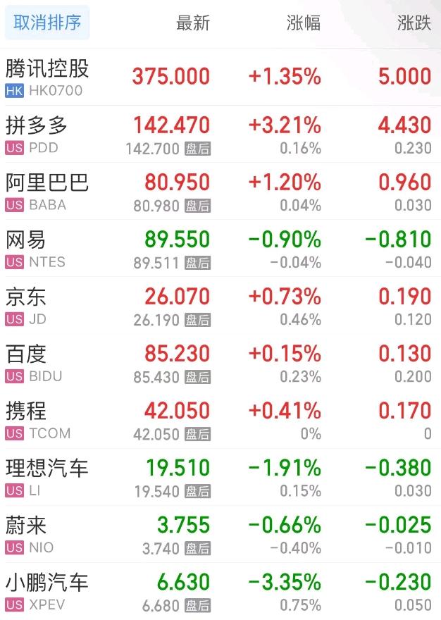热门中概股方面,腾讯控股(港股)涨1.35%,拼多多涨3.21%,阿里巴巴涨1.20%,网易跌0.90%,百度涨0.15%,携程涨0.41%,理想汽车跌1.91%,蔚来跌0.66%,小鹏汽车跌3.35%。