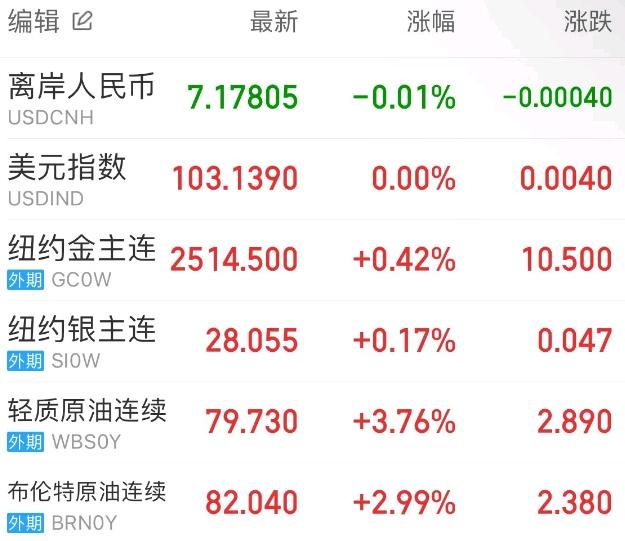 由于伊朗对以色列的报复行动在即引发对原油供应中断的担忧,国际油价大涨。WTI原油最终收涨3.76%,报79.73美元/桶;布伦特原油最终收涨2.99%,报82.04美元/桶。