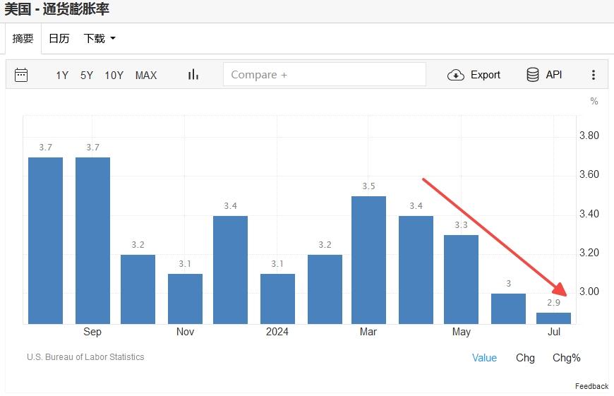 美国7月CPI基本符合预期 同比涨幅收窄至2.9%