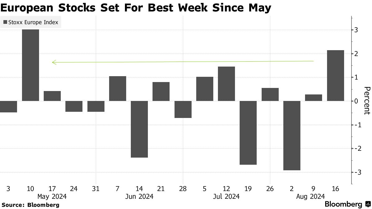 欧洲股市在开盘后继续上涨,并且有望创下三个月来最大规模的单周涨幅,主要因市场对美国经济衰退的担忧明显缓解并且市场重新聚焦于美国经济“软着陆”,以及日元套利平仓交易风波暂时告终,推动全球资金重新流向股票等风险资产,并且交易员们普遍押注美联储将于下月开启降息周期。