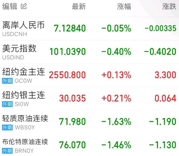 美元指数连续第四个交易日走低,盘中一度下破101关口,创年内新低,最终收跌0.4%,报101.039。