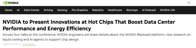 太平洋时间8月25日-27日,一年一度的顶级芯片盛会Hot Chips将在美国斯坦福大学纪念礼堂举行。英伟达在最新的博客中表示,26日的一场演讲将重点介绍Blackwell的架构细节,并演示如何在Blackwell上运行生成式AI模型。