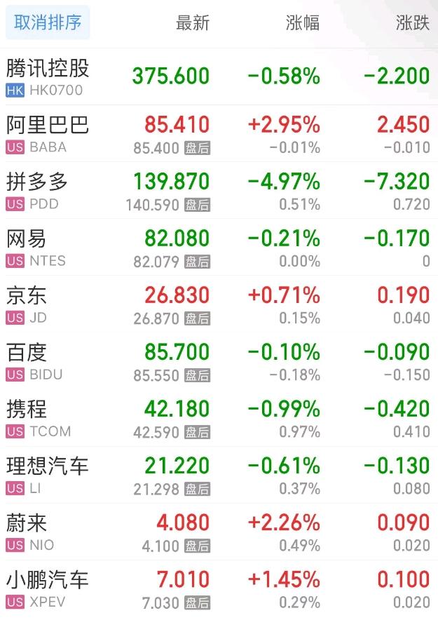 上周五热门中概股方面,腾讯控股(港股)跌0.58%,阿里巴巴涨2.95%,拼多多跌4.97%,网易跌0.21%,百度跌0.10%,携程跌0.99%,理想汽车跌0.61%,蔚来涨2.26%,小鹏汽车涨1.45%。