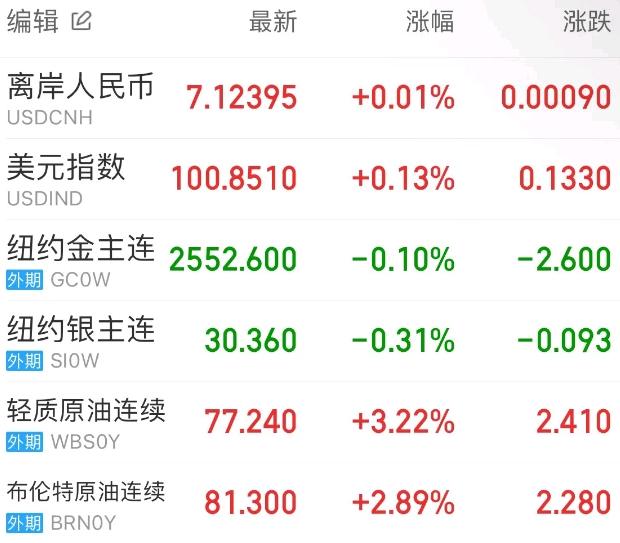 因利比亚东部政府宣布将停止所有石油生产和出口,国际油价大涨。WTI原油收涨3.22%,报77.24美元/桶;布伦特原油收涨2.89%,报81.3美元/桶。