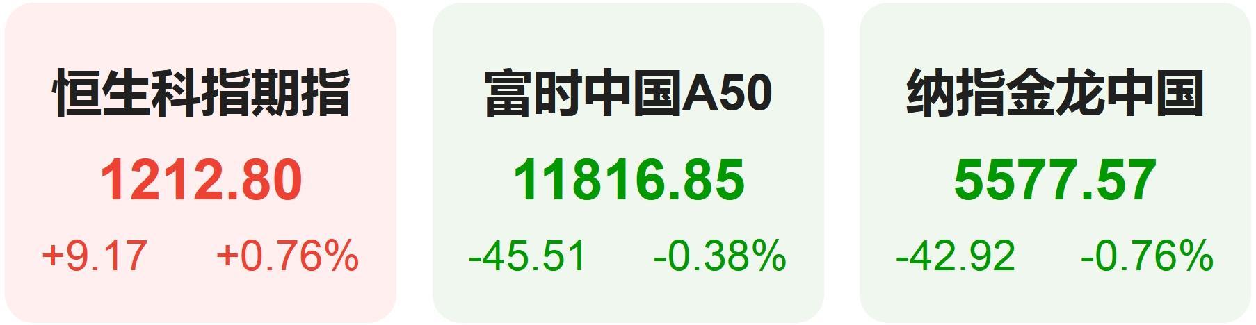 8月26日,隔夜恒生科技指数期货上涨0.76%,纳斯达克中国金龙指数下跌0.76%,富时中国A50指数下跌0.38%。
