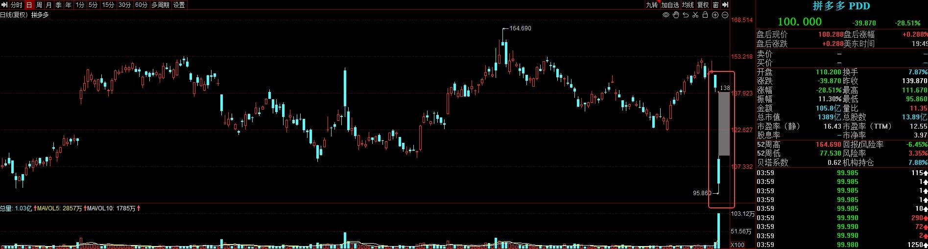 拼多多暴跌28.51%,消息面上,二季度970.6亿元(约合113.4亿美元),同比增长86%,不及市场预期的999.9亿元,同时环比增速放缓至11.8%。