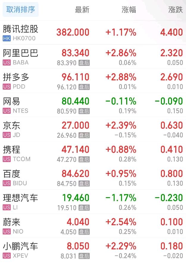 上周五,热门中概股方面,腾讯控股(港股)涨1.17%,阿里巴巴涨2.86%,拼多多涨2.88%,网易跌0.11%,携程涨0.88%,百度涨0.95%,理想汽车跌1.17%,蔚来涨2.54%,小鹏汽车涨2.29%。