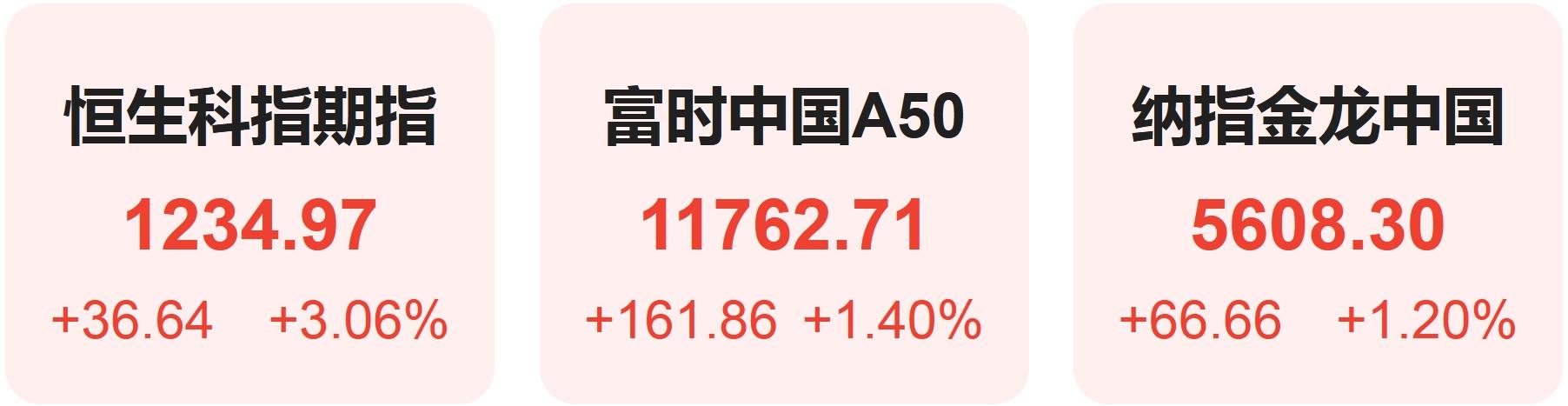 8月30日,恒生科技指数期货上涨3.06%,纳斯达克中国金龙指数上涨1.20%,富时中国A50指数上涨1.40%。