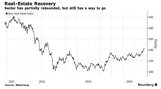 债务驱动的房地产行业正逐渐从央行为抑制通胀而加息引发的暴跌中复苏。周三,斯托克欧洲600房地产指数创下两年多以来的最高盘中水平。