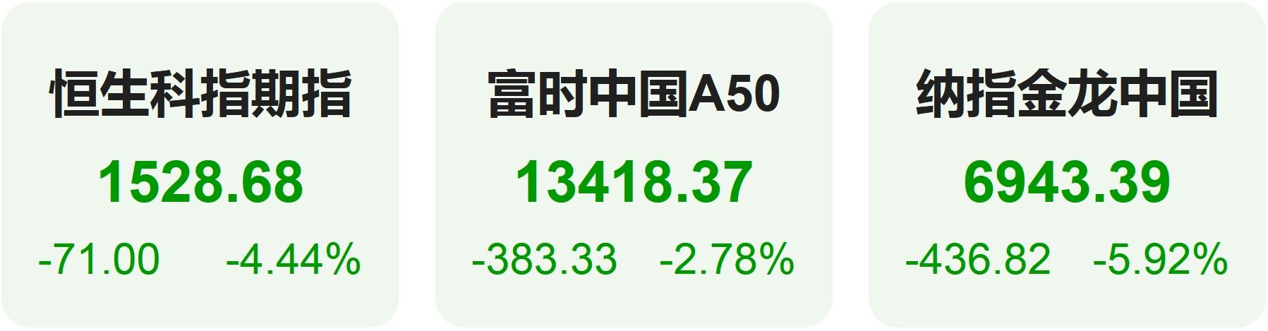 10月15日,隔夜恒生科技指数期货下跌4.44%,纳斯达克中国金龙指数下跌5.92%,富时中国A50指数下跌2.78%。