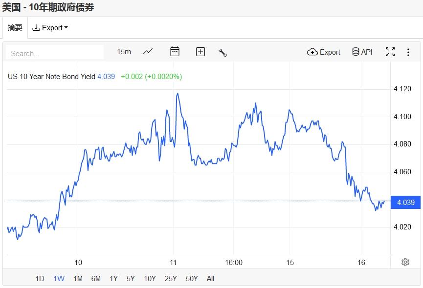 美国10年期基准国债收益率回落,报4.0317%。对货币政策更敏感的两年期美债收益率收报3.9560%。