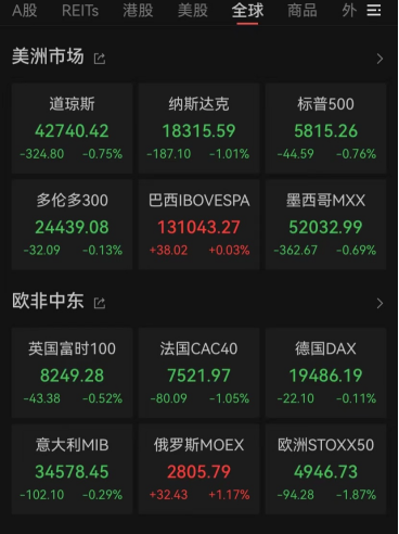 当地时间10月15日,美国三大股指全线收跌。数据显示,截至收盘,道指跌0.75%,标普500指数跌0.76%,纳指跌1.01%。