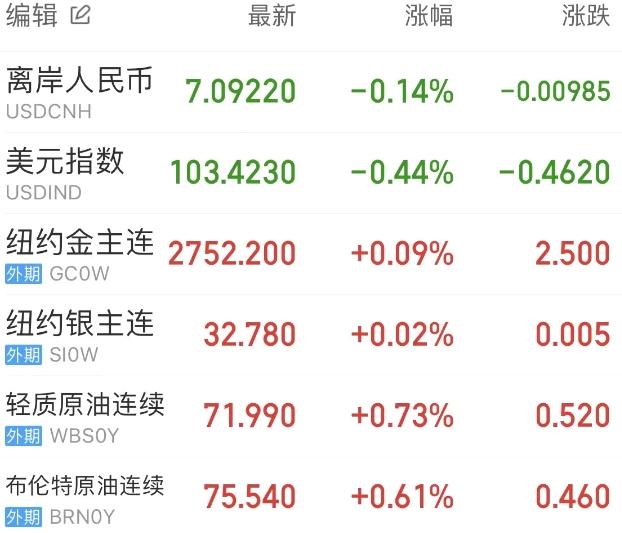 美元指数延续回调,失守104关口,最终收跌0.467%,报103.41。