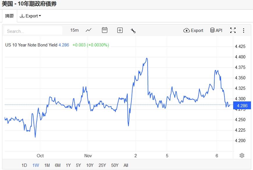 美债收益率冲高回落,基准的10年期美债收益率收报4.286%;对货币政策更敏感的两年期美债收益率收报4.181%。