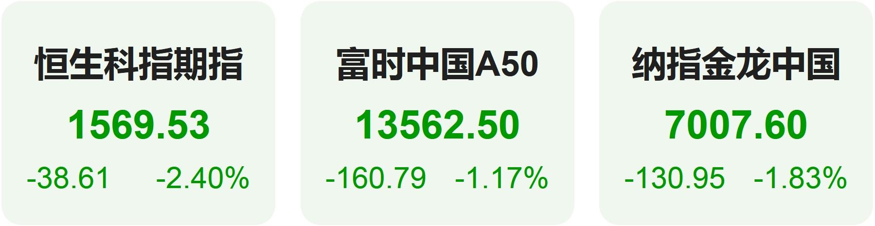 11月6日,隔夜恒生科技指数期货下跌2.40%,纳斯达克中国金龙指数下跌1.83%,富时中国A50指数下跌1.17%。