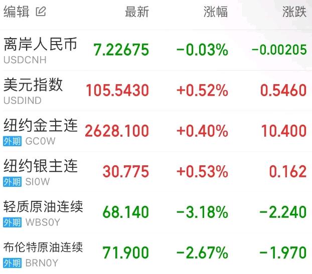 美元指数再创四个月新高,盘中最高触及105.709,最终收涨0.524%,报105.5。