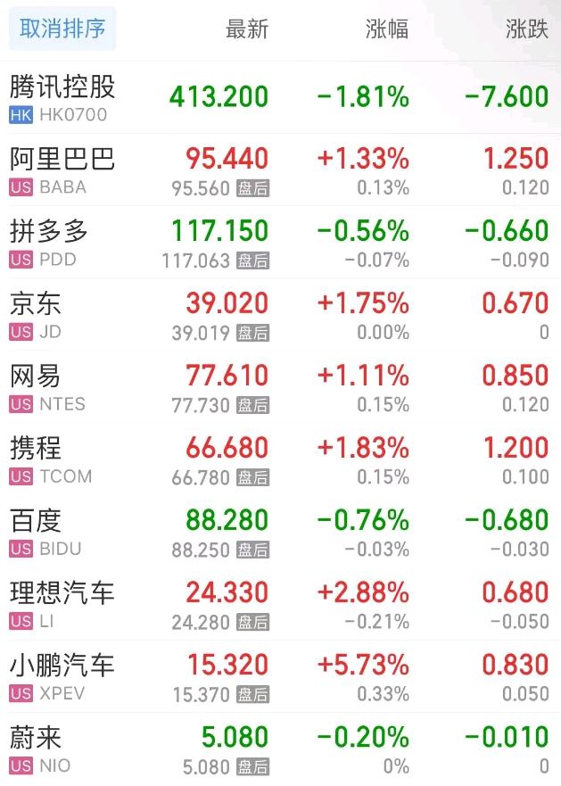 热门中概股方面,腾讯控股(港股)跌1.81%,阿里巴巴涨1.33%,拼多多跌0.56%,网易涨1.11%,携程涨1.83%,百度跌0.76%,理想汽车涨2.88%,小鹏汽车涨5.73%,蔚来跌0.20%。