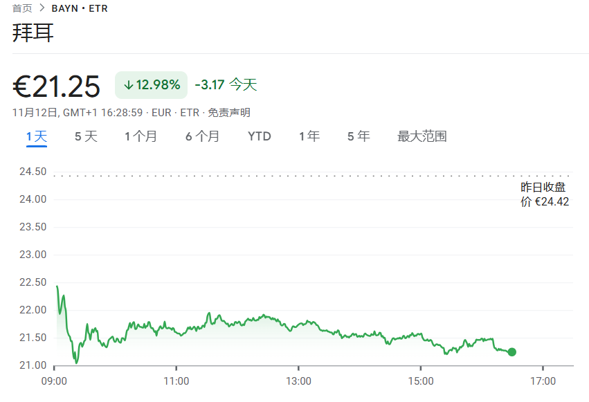 此外,德国制药化工巨头拜耳公司业绩爆雷,股价崩盘,大跌约13%。