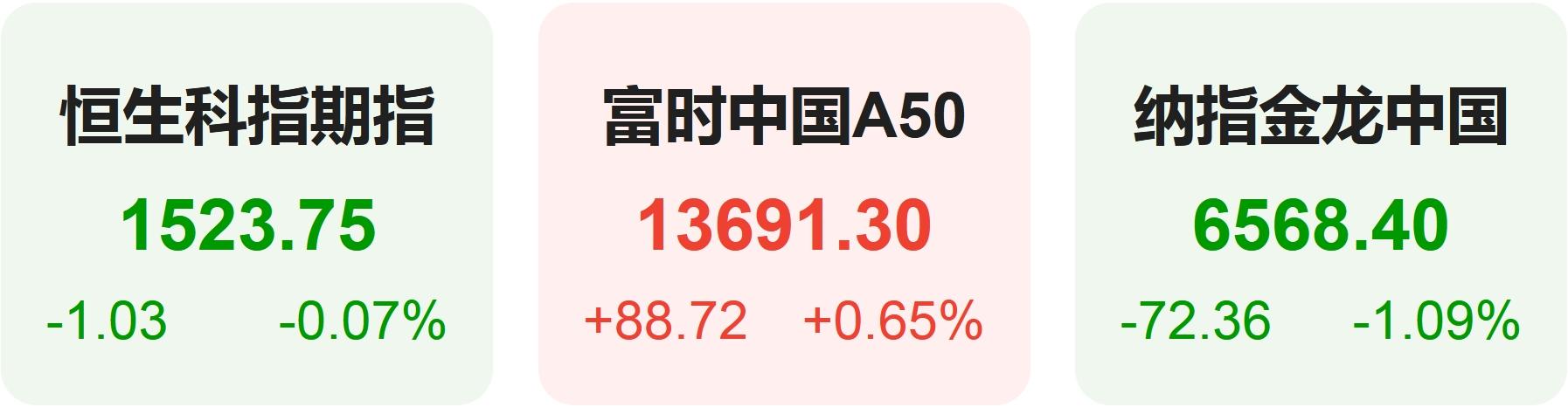 11月13日,隔夜恒生科技指数期货下跌0.07%,纳斯达克中国金龙指数下跌1.09%,富时中国A50指数上涨0.65%。